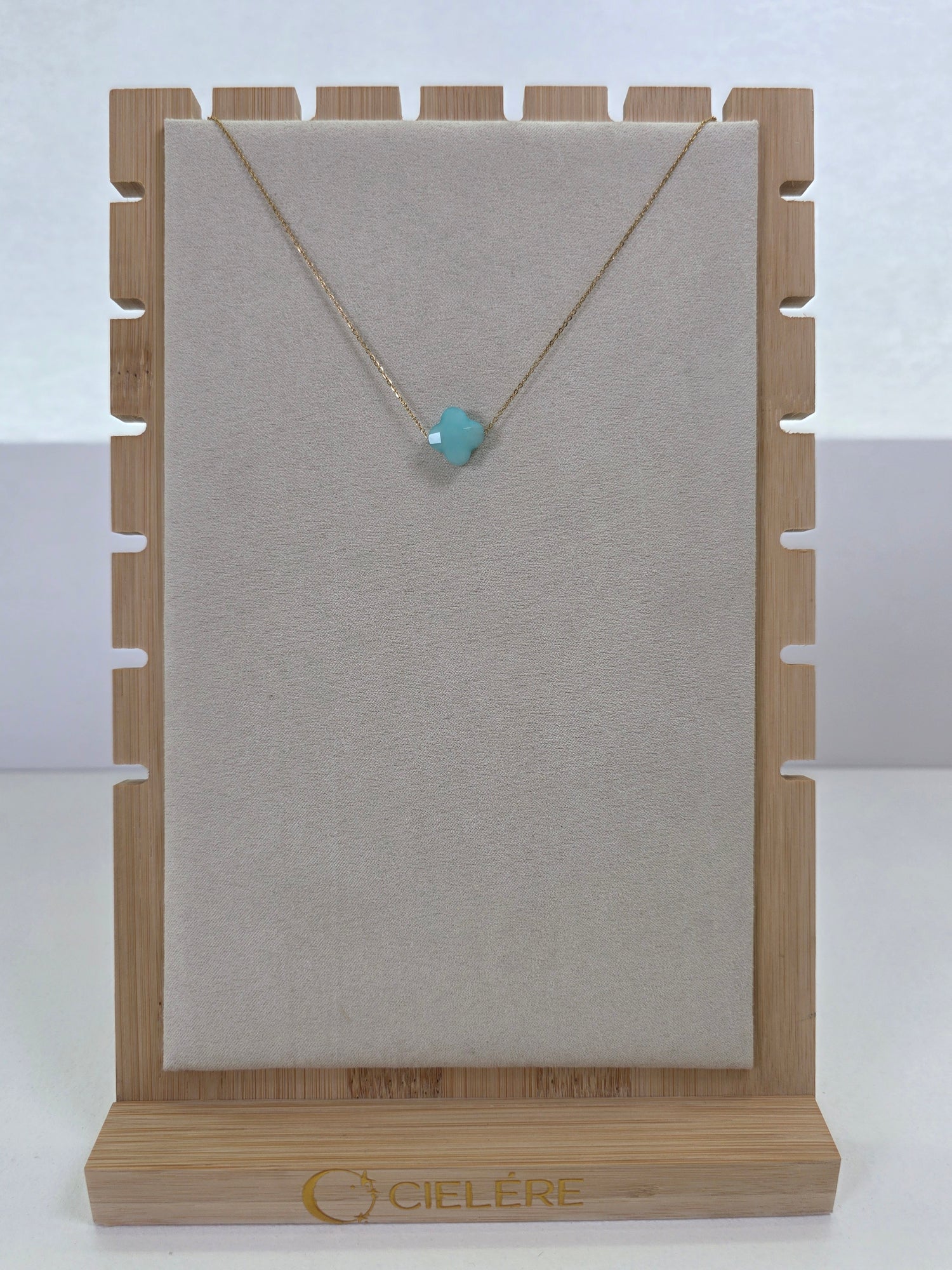 Cool, serene, and delicately glowing. The Aqua Radiant Petal Necklace features a polished aqua charm that adds a dreamy pop of color, beautifully echoing the soft, airy feel of the collection.
