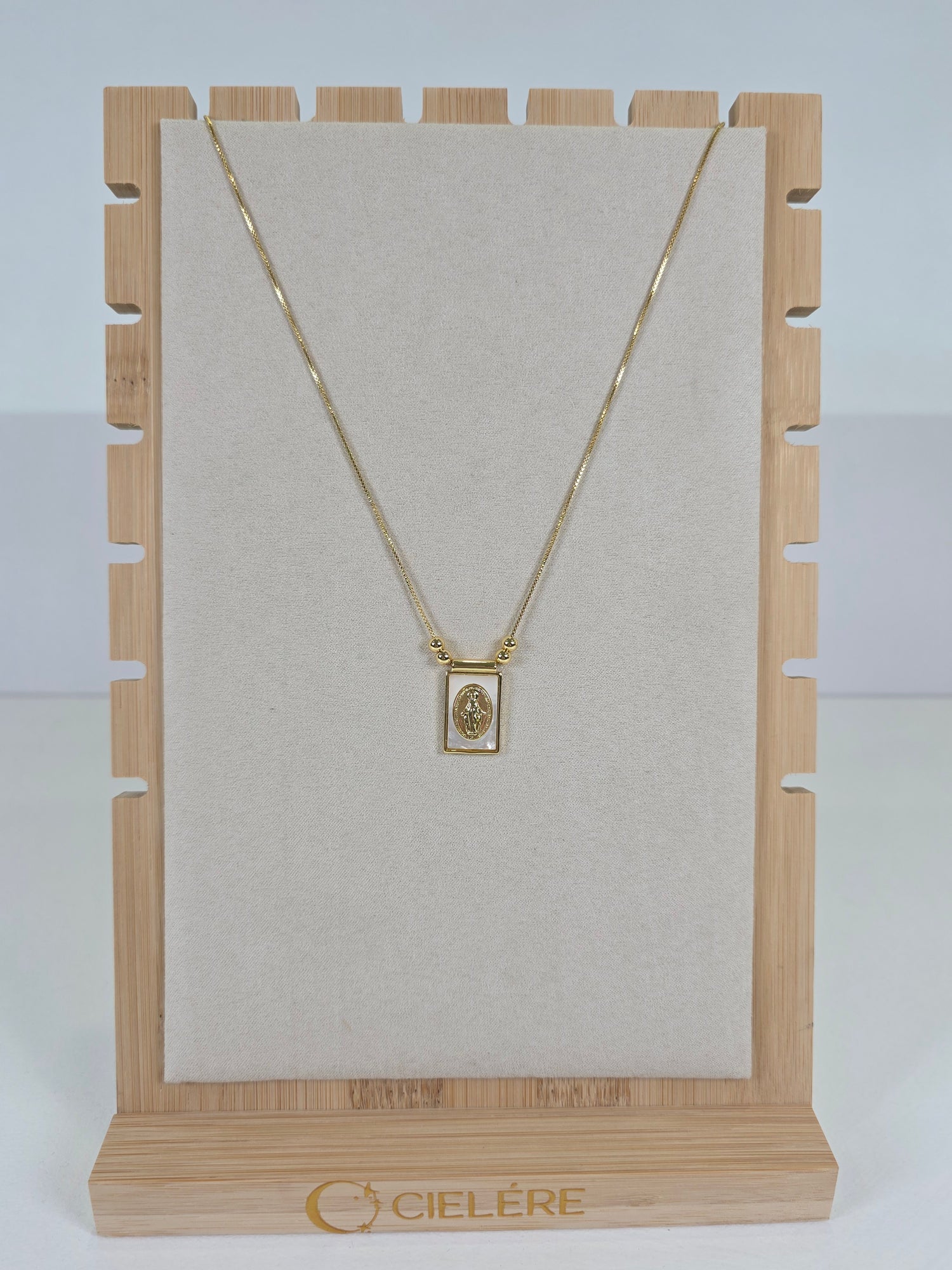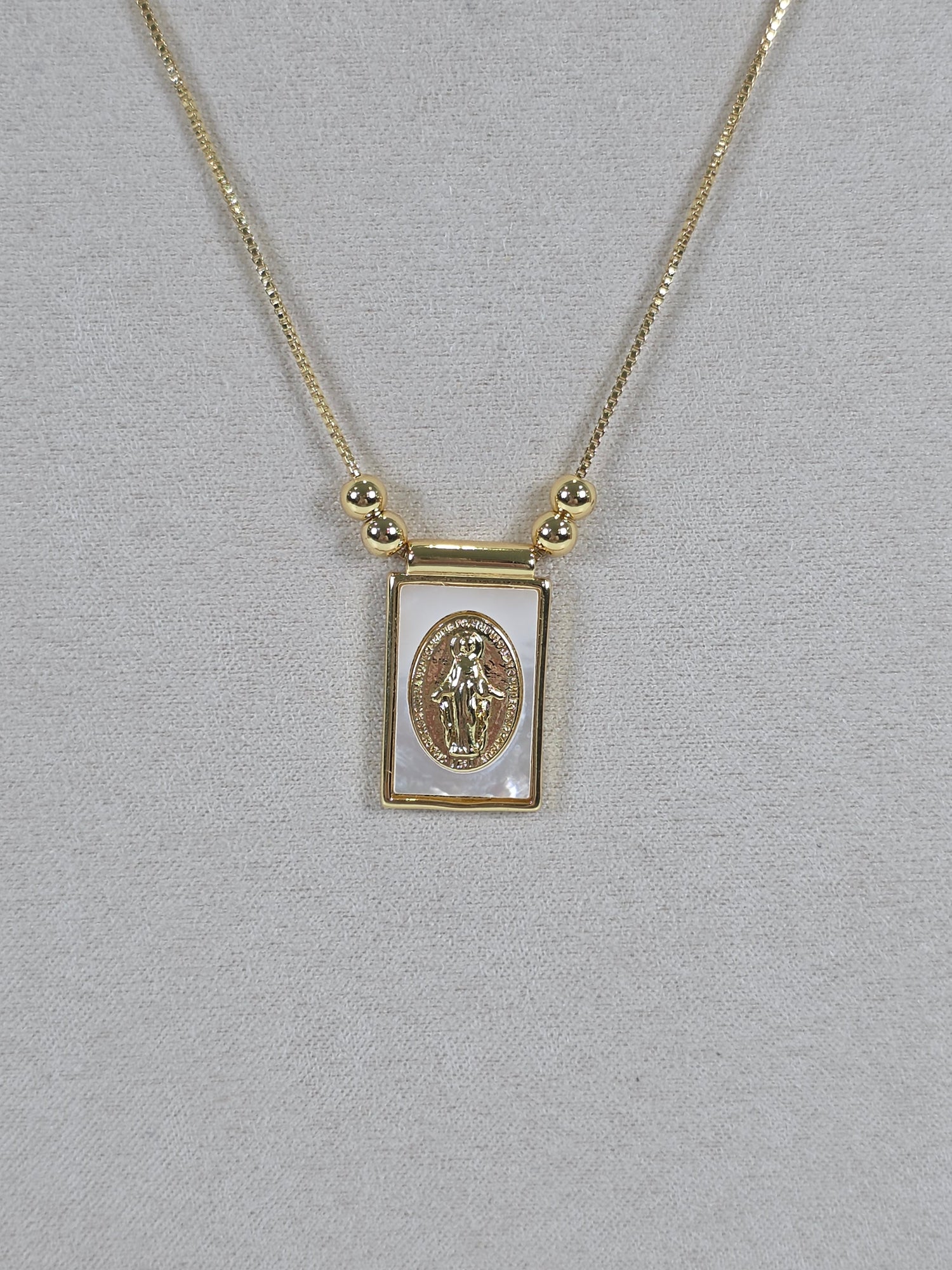 Minimalist devotion meets modern elegance. The Rectangular Sacred Icon Necklace features a sleek gold-framed rectangular charm with a raised sacred figure. Its clean silhouette and delicate beaded accents make it the perfect everyday piece for those who love subtle, faith-inspired jewelry.